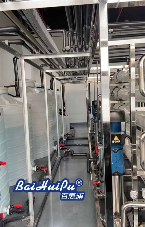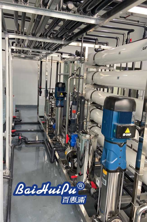 純水設備采用先進的反滲透膜技術,通過施加一定的壓力,使水分子和離子態的礦物質元素通過反滲透膜,而溶解在水中的絕大部分無機鹽、有機物以及細菌、病毒等則被截留,從而實現純凈水和濃縮水的分離。